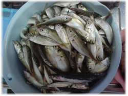 イワシだったのかよくわからなかったけど、港で小さい魚を一度にたくさん釣りました。