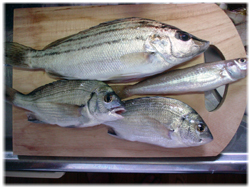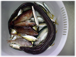 シマイサキは刺身で、アナゴは蒲焼き、チヌ、キスは塩焼き、アジは南蛮漬けで食べました。