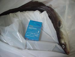 刺身はボクが食べさせてもらったよ。ヒラメのような感じでしたね。大きなガシラで、結構身もありましたよ。穴子はこれもかなり大きかったですね。ボクの口には入らなかったけれど・・・。