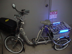 またホーンは思ったより”いい感じ”です。チャリンコから車のクラクションが聞こえてくるのですから、ちょっとびっくりです。右側の画像がその配線の一部です。ハンドルの前のボックスの中です。