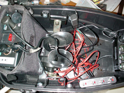 ネオン管にしてもホーンにしても自動車用のモノを使用しますのでバッテリーをどうするかで悩みました。また取付も意外に複雑なモノになりました。