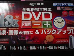 Amazonで外付けDVDドライブを買いました。 BUFFALO DVD-RAM/±R(2層)/±R/±RWドライブ USB2.0対応 外付 DVSM-XE1218U2/B" 4387円でした。安い。。。ちょっと見ない間にこんなに低価格化が進んでいたとは。。。得した気分でした。