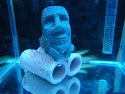 その青年の治療を終えて、クリニックのリニューアルに向けて準備に取りかかりました。今日は中環沿いのニトリに行ってきました。ここは、日曜日は混み合っていてなかなかたどり着けないので、木曜日がねらい目です。気に入ったイスがありましたので購入し、帰りにひごペットに寄って来ました。オスカーのエサのメダカを大量購入してきました。画像はポリプテルス・セネガルスの水槽に入れたモアイ像です。